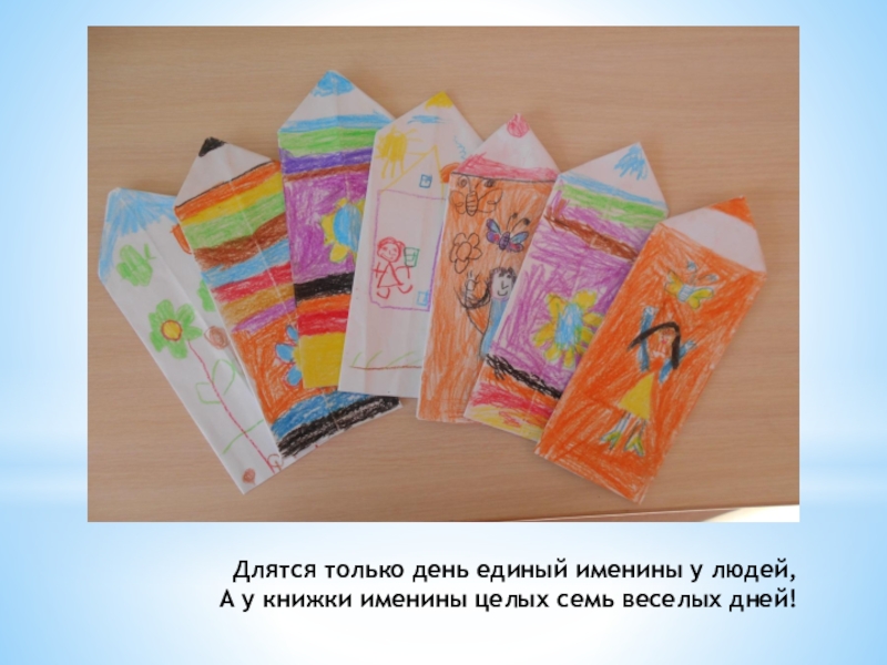 Слайд 3 Длятся только день единый именины у людей, А у книжки именины целых