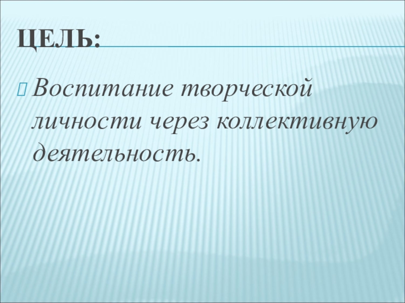 ЦЕЛЬ: Воспитание творческой личности через коллективную деятельность.