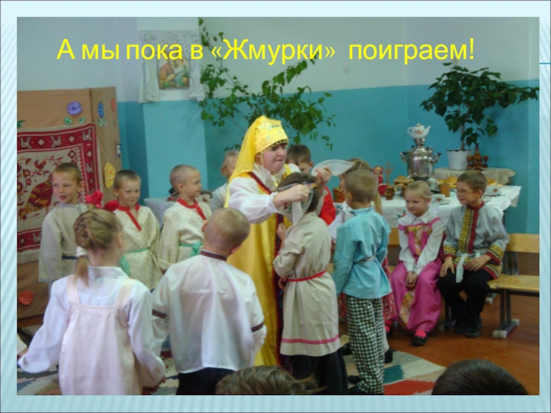 Вот толкушка, кто будет капусту толочь?А мы пока в «Жмурки» поиграем!