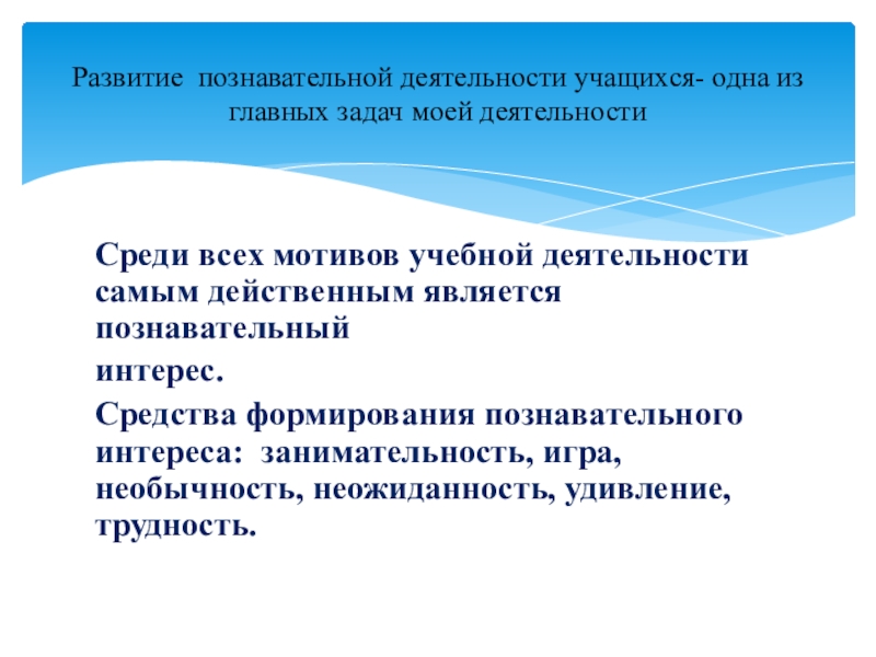 Развитие познавательной деятельности учащихся- одна из главных задач моей деятельности