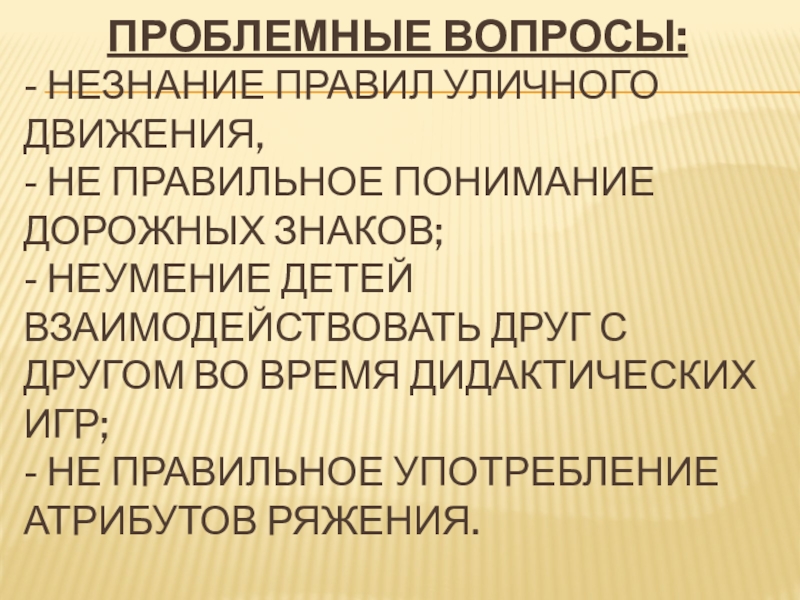 Слайд 3 Проблемные вопросы: - незнание правил уличного