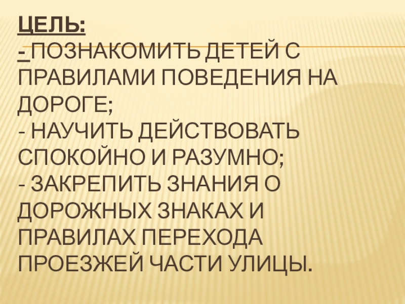 Слайд 2Цель: - познакомить детей с правилами поведения на дороге; - научить