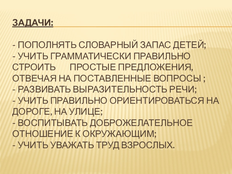 Слайд 5Задачи: - Пополнять словарный запас детей; - Учить грамматически правильно строить