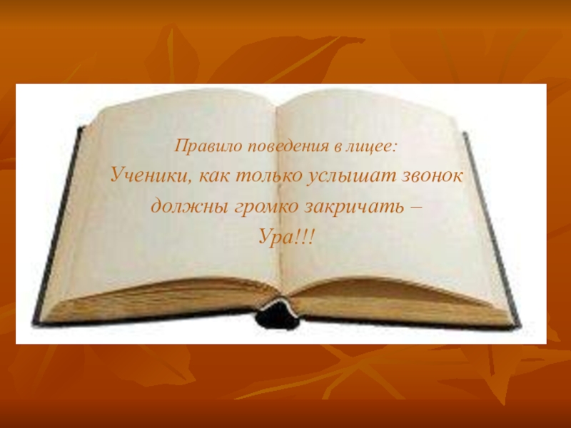 Правило поведения в лицее:Ученики, как только услышат звонок должны громко закричать – Ура!!!