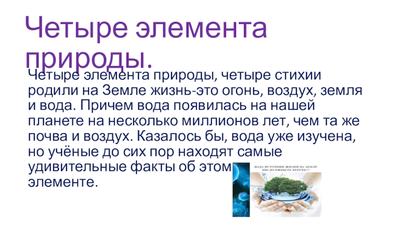 Слайд 2Четыре элемента природы.