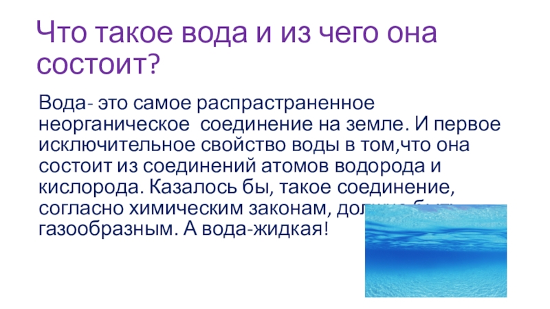 Слайд 4Что такое вода и из чего она состоит?