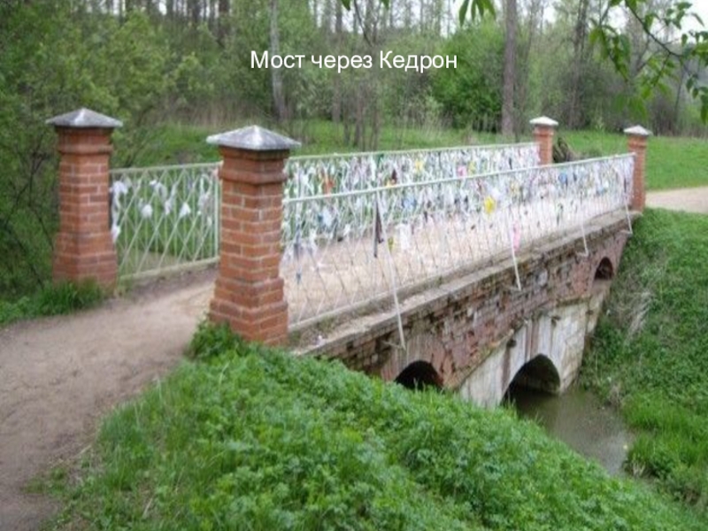 Кедрона. В переводе это слово означает черный или темный поток. Сейчас я вас расскажу не о Мертвом море, куда впадает библейский Кедронский поток, а в ближайшее Подмосковье к Новоиерусалимскому монастырю, чтобы увидеть эту черную реку. Почему же она черная? По преданию Кедрон наполнялся водой только в сезон дождей. Подмосковный Кедрон тоже представляет собой овраг, берущий начало из монастырских озер, расположенных на северной части монастыря. Здесь он имеет искусственное происхождение и был прорыт по указу Святейшего Патриарха Никона. На Востоке долина, где протекает этот поток, почитается не только Христианами, но и Иудеями и Мусульманами, поскольку именно в этом месте произойдет Страшный Суд.