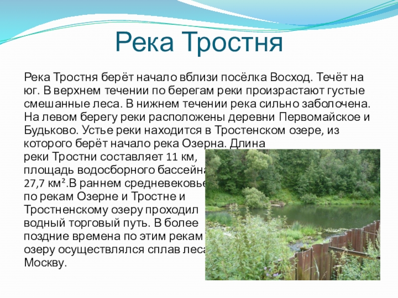 Слайд 40Река Тростня
