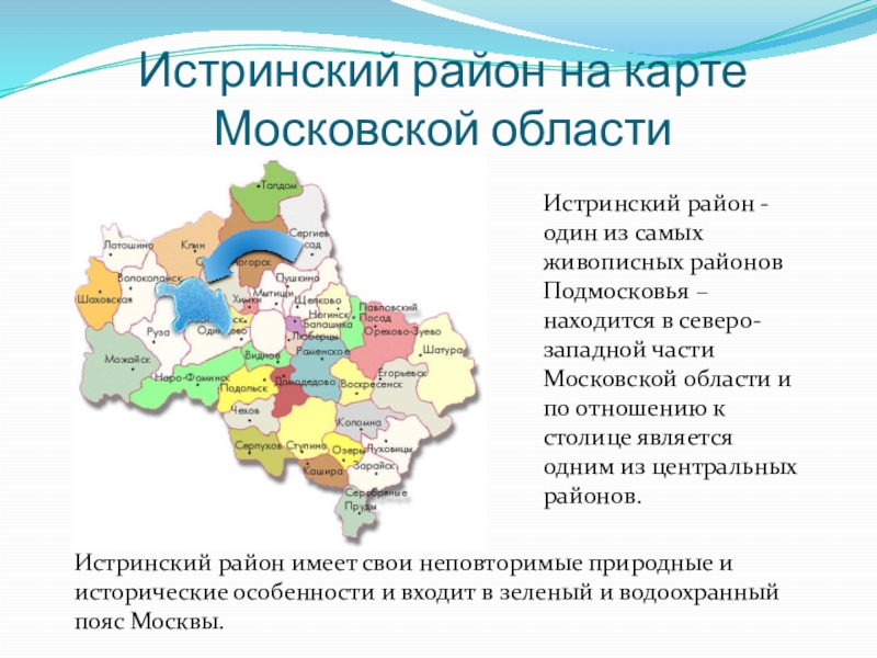 Слайд 2Истринский район на карте Московской области