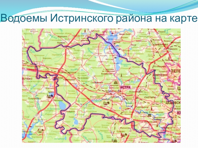 Слайд 3Водоемы Истринского района на карте