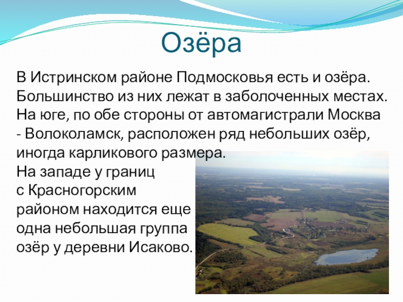 В Истринском районе Подмосковья есть и озёра. Большинство из них лежат