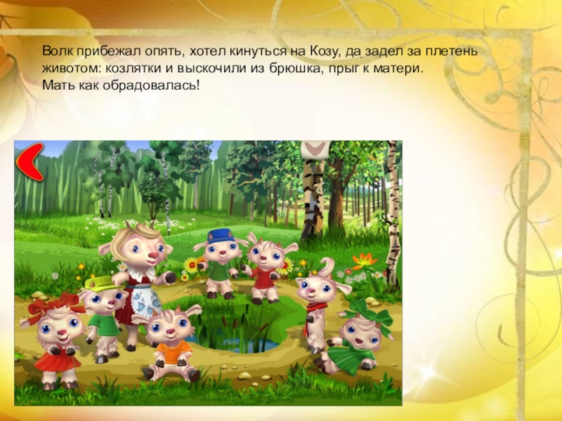 животом: козлятки и выскочили из брюшка, прыг к матери.