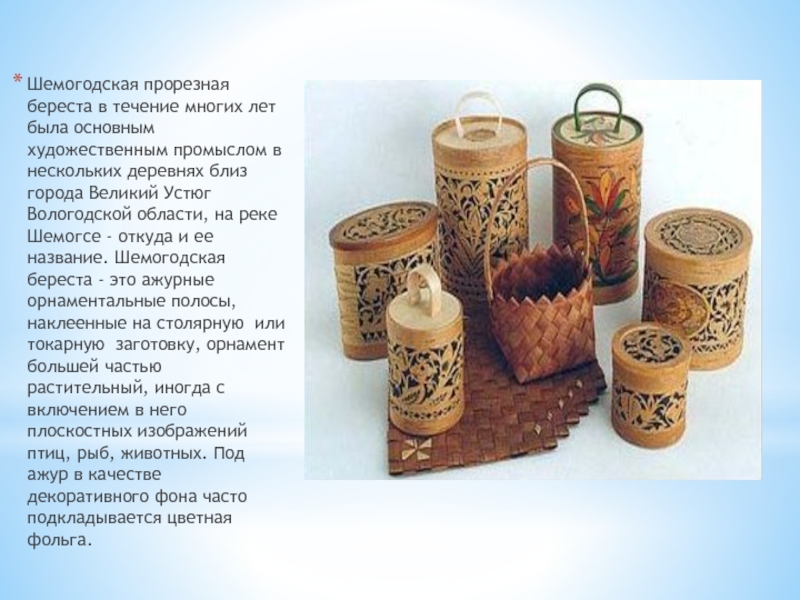 Шемогодская прорезная береста в течение многих лет была основным художественным промыслом