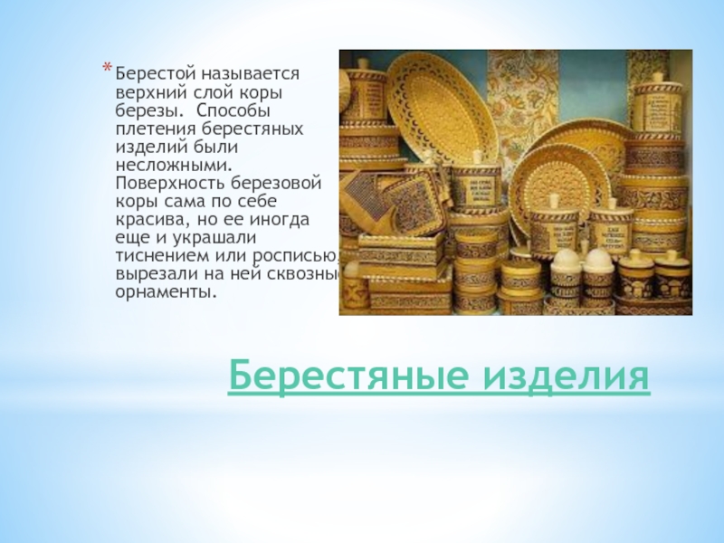 Слайд 5Берестяные изделия