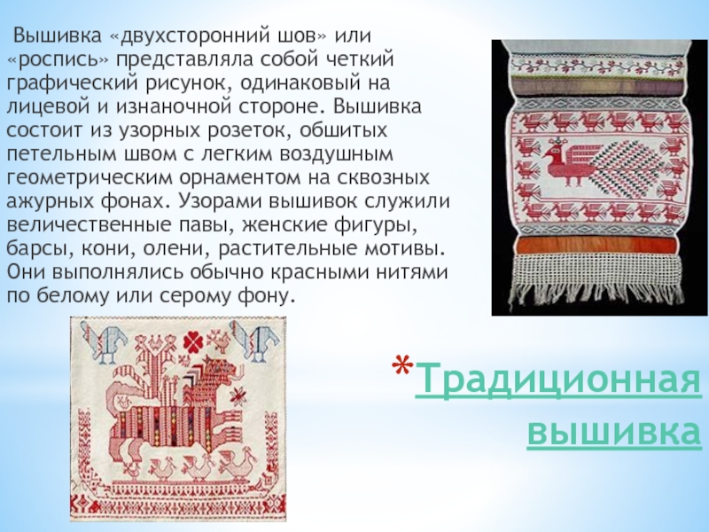 Вышивка «двухсторонний шов» или «роспись» представляла собой четкий графический