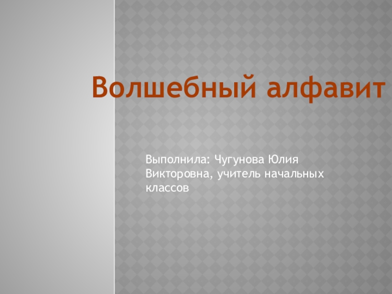 Выполнила: Чугунова Юлия Викторовна, учитель начальных классов Волшебный алфавит