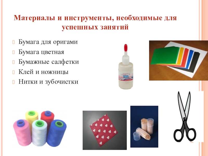 Слайд 14Материалы и инструменты, необходимые для успешных занятий