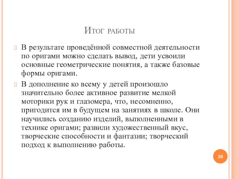 В результате проведённой совместной деятельности по оригами можно сделать вывод,