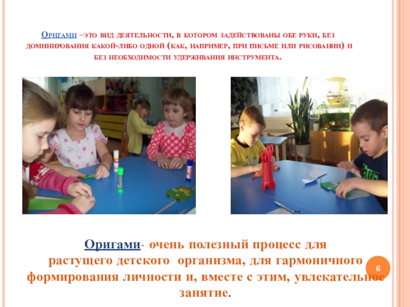 Слайд 6Оригами –это вид деятельности, в котором задействованы обе руки, без доминирования