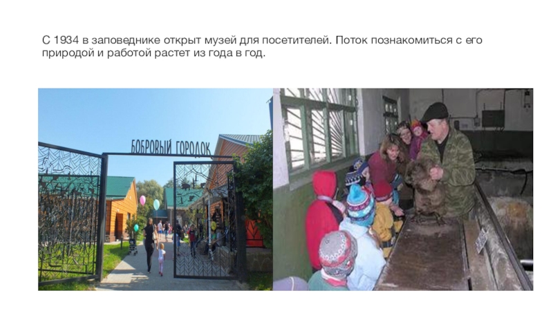 Слайд 17С 1934 в заповеднике открыт музей для посетителей. Поток познакомиться с