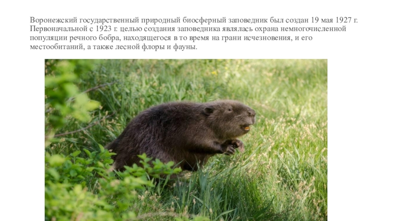 Слайд 4Воронежский государственный природный биосферный заповедник был создан 19 мая 1927 г.