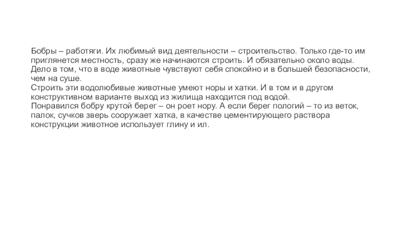 Слайд 9Бобры – работяги. Их любимый вид деятельности – строительство. Только где-то