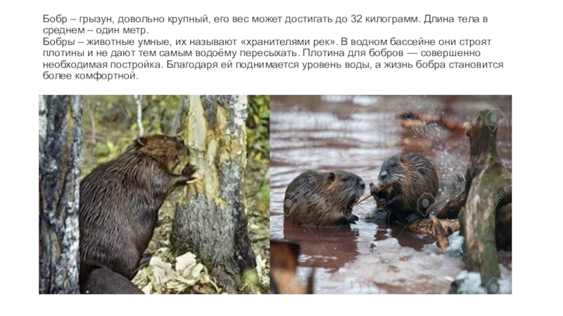 Слайд 11Бобр – грызун, довольно крупный, его вес может достигать до 32