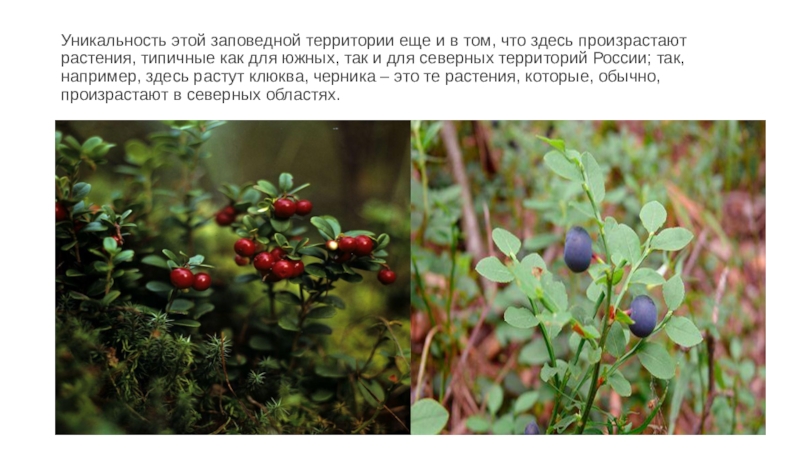 Слайд 13Уникальность этой заповедной территории еще и в том, что здесь произрастают