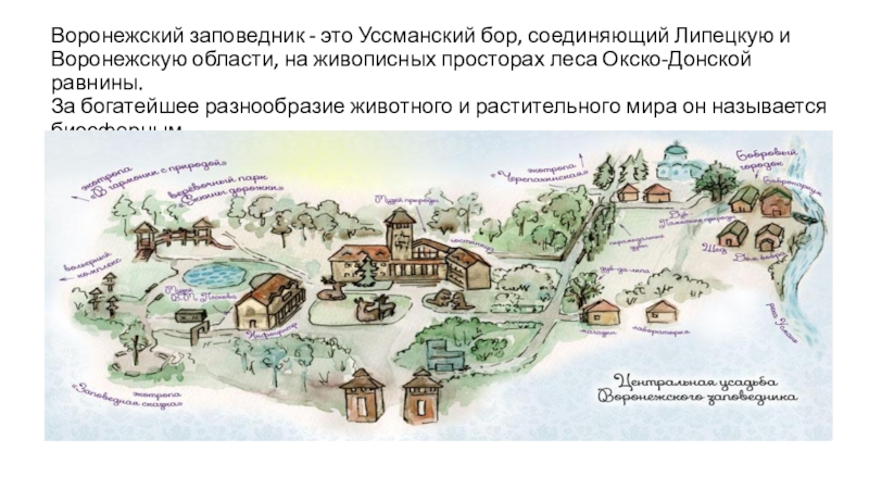 Слайд 2Воронежский заповедник - это Уссманский бор, соединяющий Липецкую и Воронежскую области,