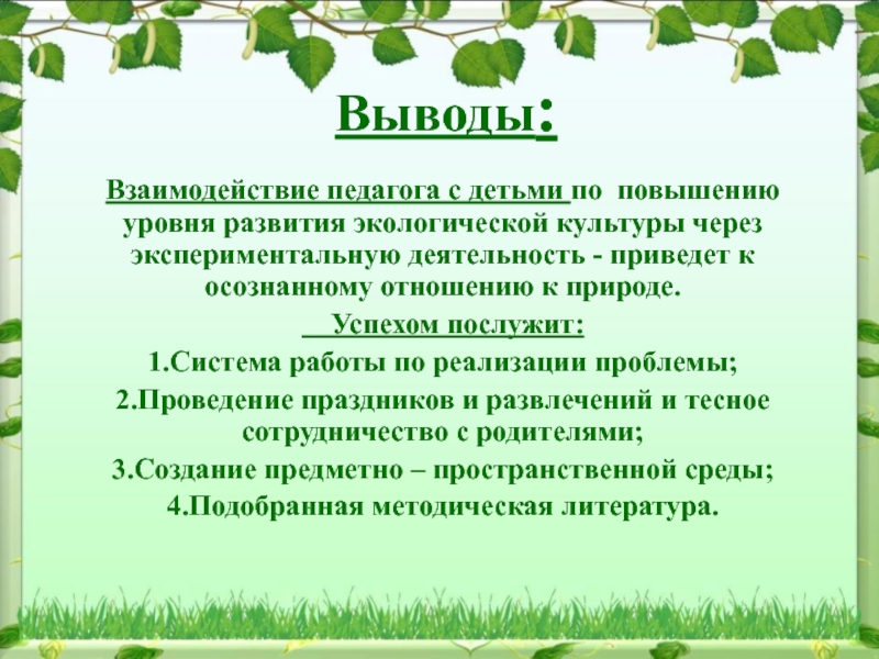 5. Проанализировать результат и перспективность влияния опытно-экспериментальной деятельности на формирование экологической культуры у младших дошкольников.