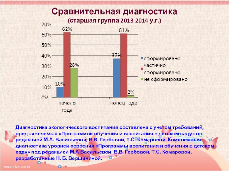 требований, предъявляемых «Программой обучения и воспитания в детском саду» по редакцией М.А. Васильевой, В.В, Гербовой, Т.С. Комаровой. Комплексная диагностика уровней освоения «Программы воспитания и обучения в детском саду» под редакцией М.А.Васильевой, В.В, Гербовой, Т.С. Комаровой, разработанные Н. Б. Вершининой.