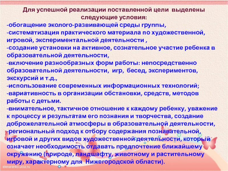 Слайд 6Для успешной реализации поставленной цели выделены следующие условия: