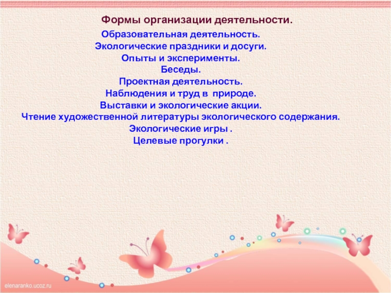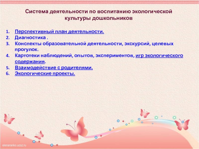 Слайд 11Система деятельности по воспитанию экологической культуры дошкольников
