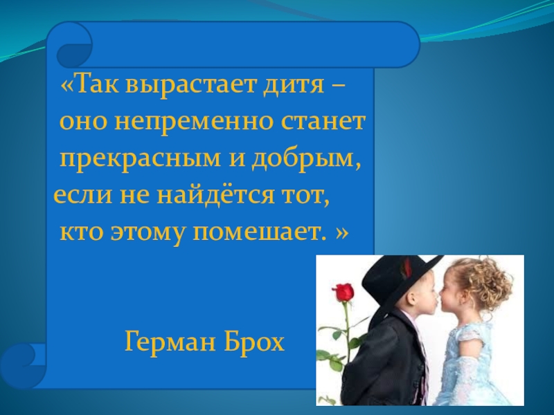 «Так вырастает дитя – оно непременно станет прекрасным и добрым, если не найдётся тот, кто этому