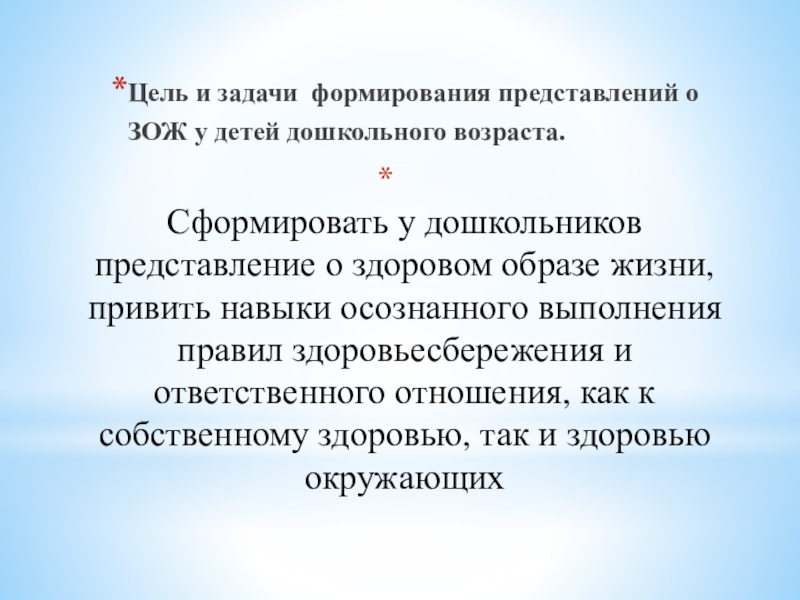 Цель и задачи формирования представлений о ЗОЖ у детей дошкольного возраста.