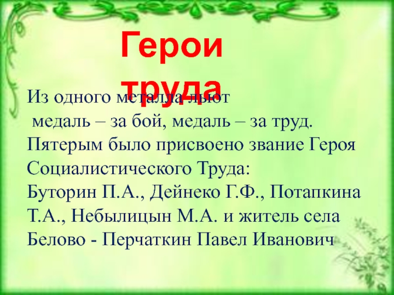 Буторин П.А., Дейнеко Г.Ф., Потапкина Т.А., Небылицын М.А. и житель села Белово - Перчаткин Павел Иванович