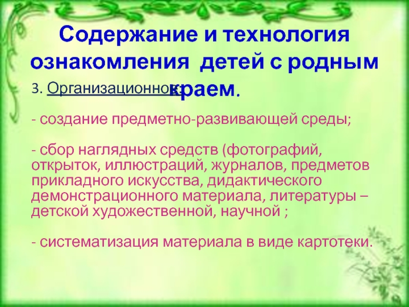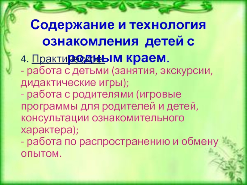 Слайд 5Содержание и технология ознакомления детей с родным краем.