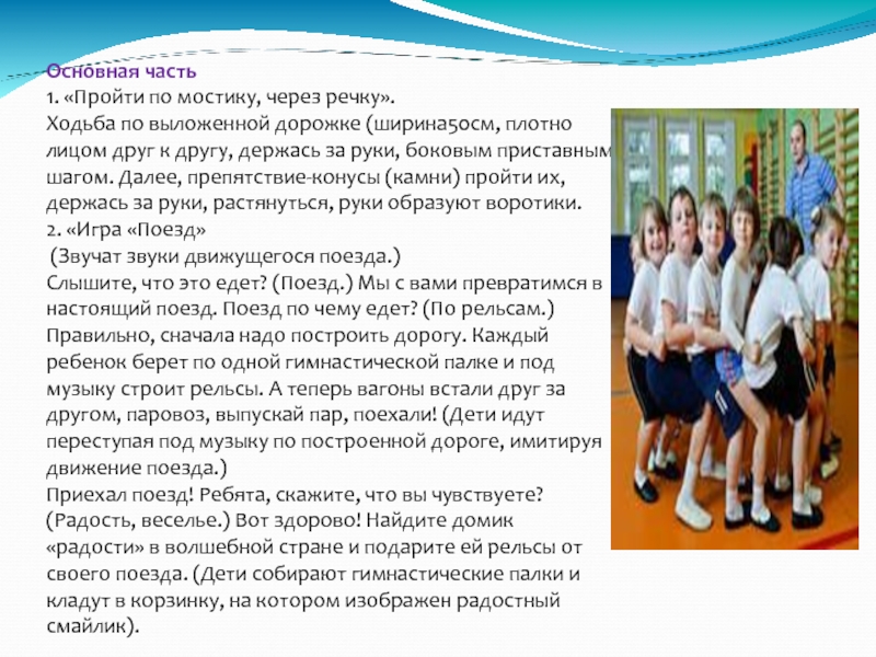 1. «Пройти по мостику, через речку».