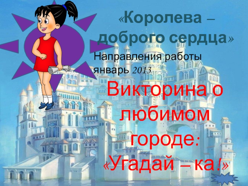 Слайд 31«Королева – доброго сердца»