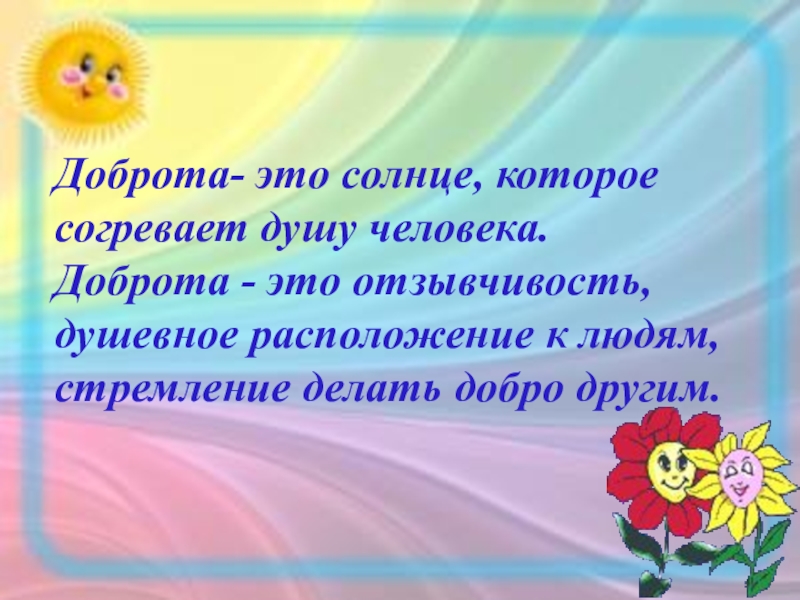 отзывчивость, душевное расположение к людям, стремление делать добро другим.