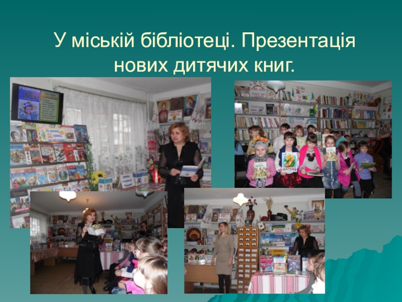 Слайд 49 У міській бібліотеці. Презентація нових дитячих книг.