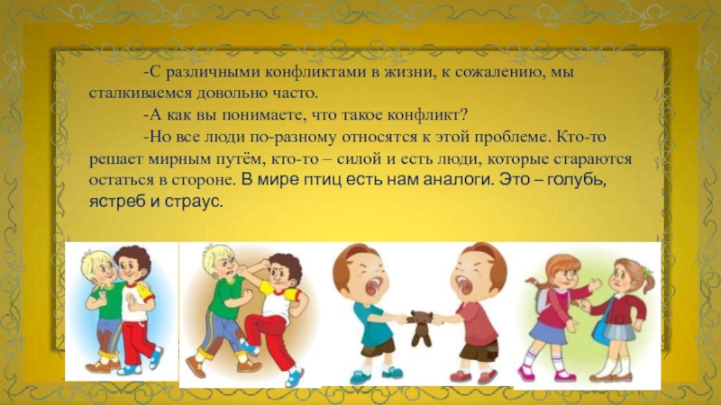 Те, кто, не вступая в конфликт, уходит от проблемы.