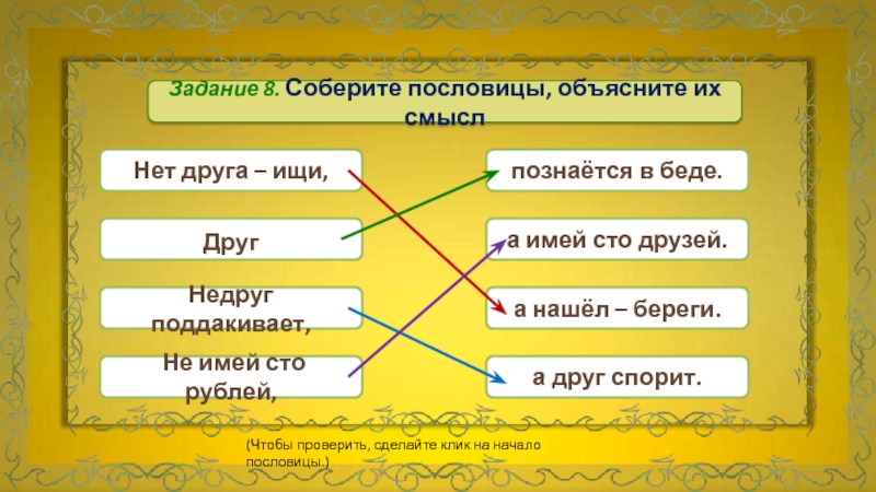 (Чтобы проверить, сделайте клик на начало пословицы.)