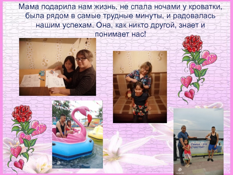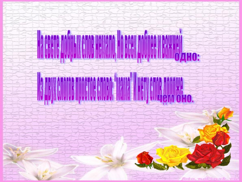 Из двух слогов простое слово: “мама” И нету слов дороже,