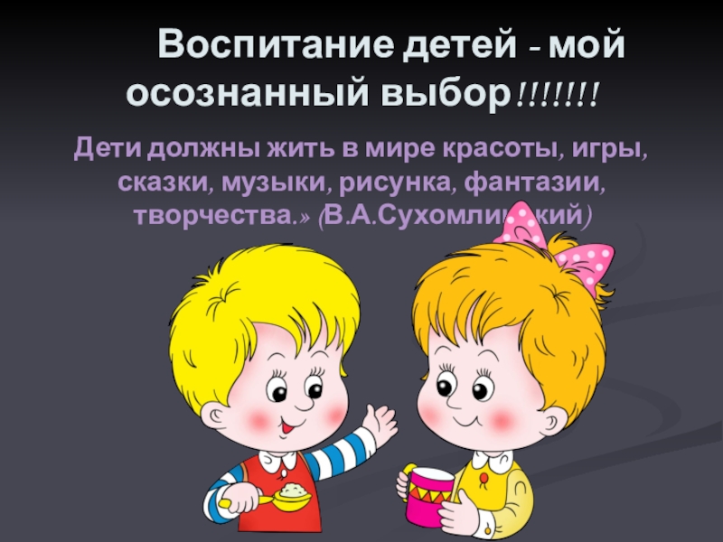 Дети должны жить в мире красоты, игры, сказки, музыки, рисунка, фантазии, творчества.» (В.А.Сухомлинский)