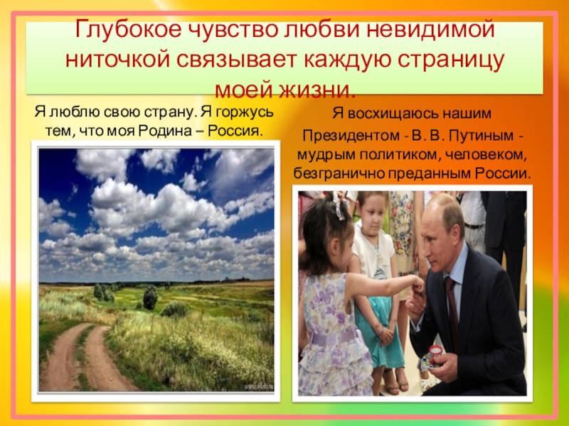 Президентом - В. В. Путиным - мудрым политиком, человеком, безгранично преданным России.