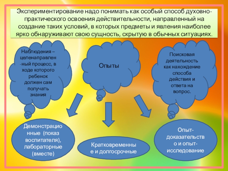 Наблюдения –целенаправлен-ный процесс, в ходе которого ребенок должен сам получать знания