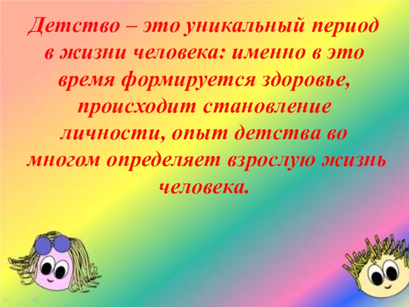время формируется здоровье, происходит становление личности, опыт детства во многом определяет взрослую жизнь человека.