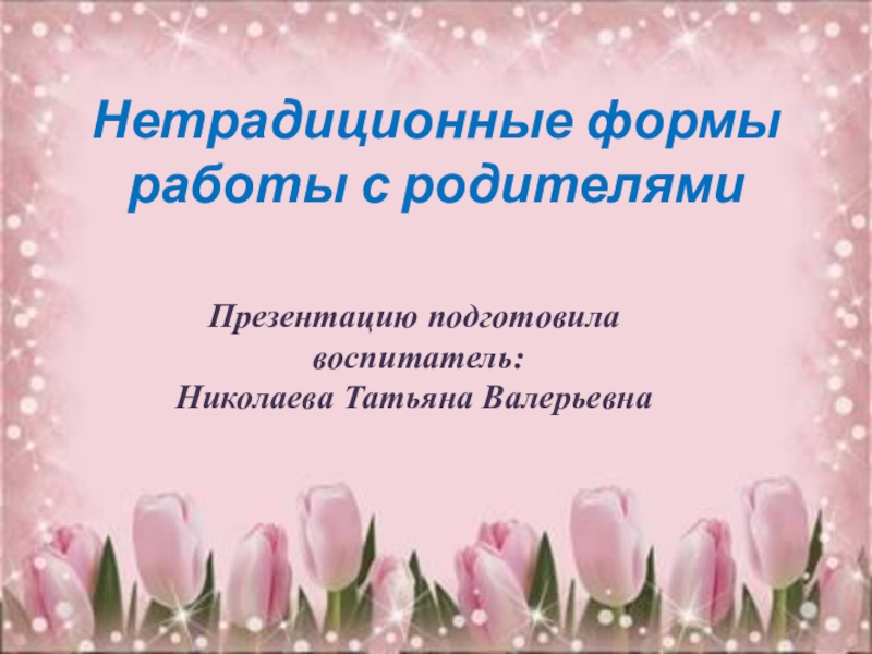 Нетрадиционные формы работы с родителями  Презентацию подготовила воспитатель:Николаева Татьяна Валерьевна