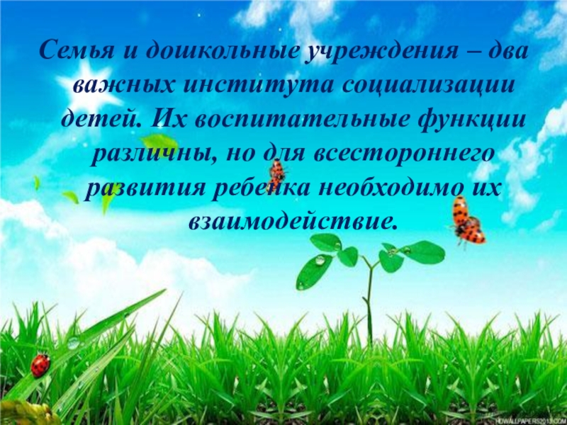Слайд 3Семья и дошкольные учреждения – два важных института социализации детей. Их